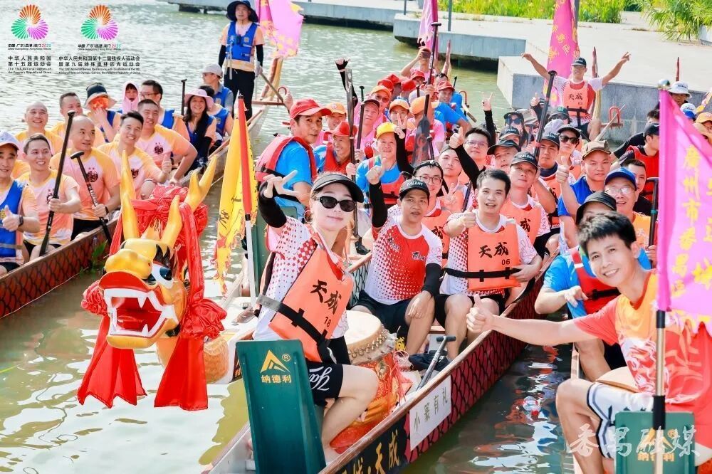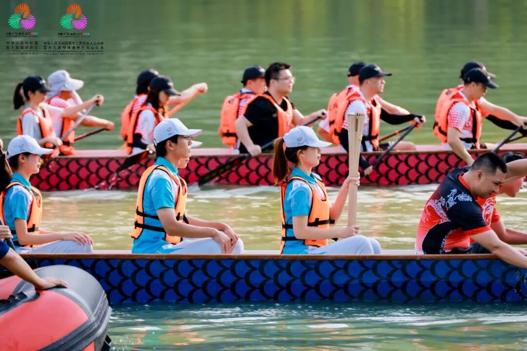 最答允东说念主心的场景在沥江水说念亚运城段上演。象征着体育精神的火种和火把,在火种护卫队的护送下走上龙舟。伴跟着震天的锣饱读和整皆的号子,亚运城龙舟队的5艘龙舟破浪前行,以一场极具岭南风情的“龙舟竞渡”典礼,护送全运会火种驶向新征途。
