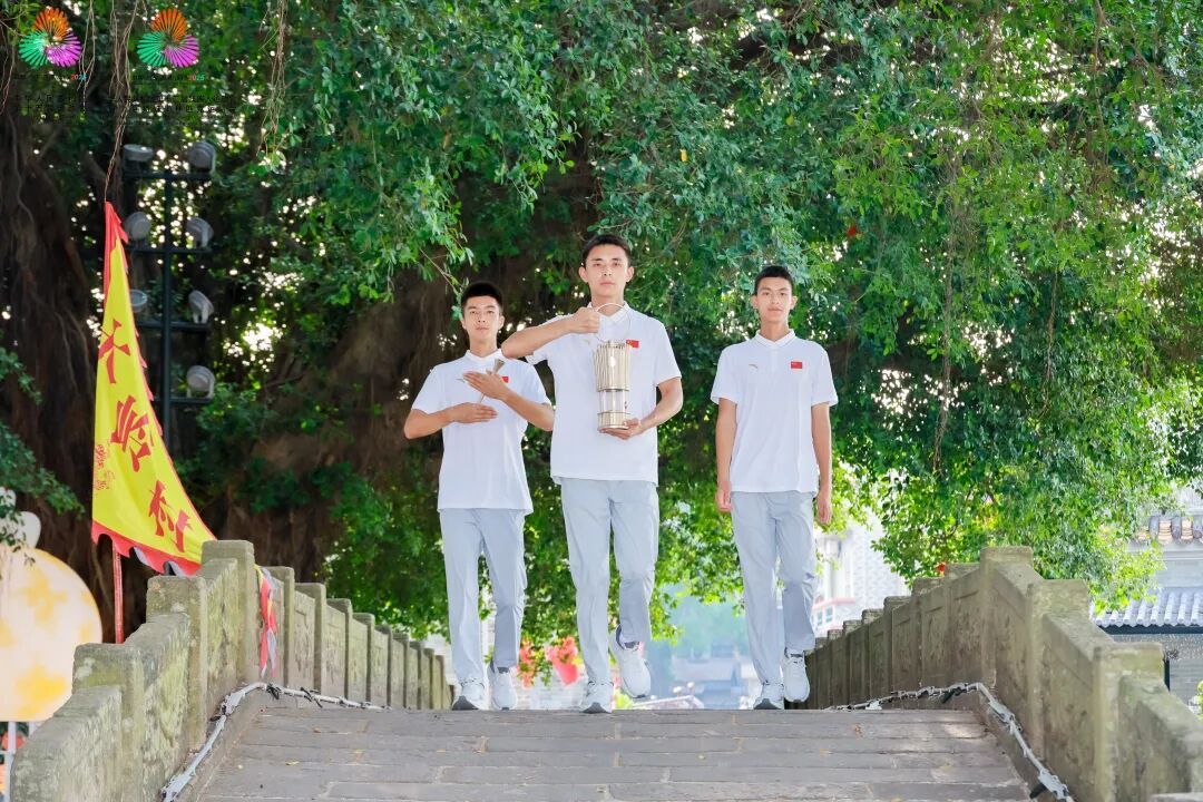 火种传递首站来到番禺区石楼镇大岭村——广州首个“中国历史文假名村”。在玉带河边、龙津桥头的显宗祠前,火种护卫队尊容入场,火把手志愿者手握火把亮相,转眼燃烧现场敌视。